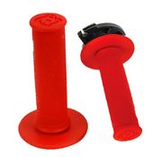В комплект входят: дроссельная трубка, соответствующая спецификациям оригинального оборудования (OEM spec throttle tube); алюминиевые стопорные кольца, изготовленные на станке с ЧПУ; болты из нержавеющей стали с головкой под ключ Torx T15, которые устойчивы к истиранию и коррозии; набор кулачков для регулировки дроссельной заслонки (4 & 2 Stroke big bike snap on multi adjust throttle cams). Комплект обеспечивает: надёжное сцепление без проскальзывания; простую установку и снятие без ожидания высыхания клея; регулировку положения вафельного рисунка в 22 точках; диаметр, проверенный гонками, с мягким липким покрытием, обеспечивающим максимальное ощущение и контроль; конический вафельный рисунок, который повторяет форму руки и обеспечивает комфорт для большого пальца; канавку в форме кольца для фиксации грипсы.
